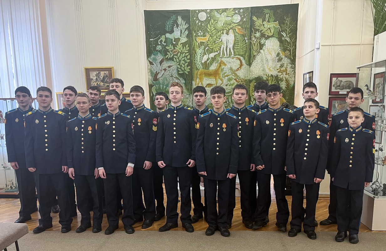 Воспитанники 5 курса Ставропольского президентского кадетского училища совместно с воспитателями Аидой Александровной Перехода, Сергеем Анатольевичем Большаковым, Евгением Викторовичем Шмаковым, Александром Сергеевичем Куриленко и Александром Леонидовичем Репуховым посетили Ставропольский краевой музей изобразительных искусств накануне знаменательной даты – дня освобождения Ставрополя от фашистских захватчиков.