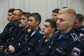 Далее по традиции педагог-организатор курса Оксана Сергеевна Романова озвучила результаты по номинациям переходящих вымпелов и статуэток. В 1 четверти вымпелом и статуэткой «За лучшие показатели в учёбе» награждён 10 «А» класс (воспитатели: Ермошина Марина Николаевна, Додокин Алексей Владимирович). «Самым дисциплинированным классом» стал 10 «Д» (воспитатели: Удовиченко Ольга Фёдоровна, Гутенёв Дмитрий Сергеевич). «За успехи в спорте» и «За лучший внутренний порядок» награждён 10 «В» класс (воспитатели: Дворникова Алла Владимировна, Корыпалов Дмитрий Владимирович). Вымпелом и статуэткой «За успехи в творчестве» и «Общественная деятельность» награждён 10 «Г» класс (воспитатели: Ленкова Татьяна Ивановна, Гусейнов Вагиф Фазил Оглы).