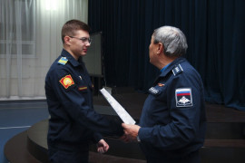 Начальник курса Ризабек Кабайдуллович Акинжанов вручил дипломы победителям и призёрам в лично-командном первенстве СПКУ по лёгкой атлетике, а также дипломы и сертификаты за участие и победу в VI региональной военно-спортивной игре «Зарница». Руководителю команды Дмитрию Сергеевичу Гутенёву, воспитателю 10 «Д» класса вручили благодарственное письмо за подготовку команды.