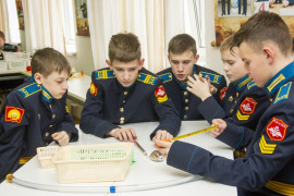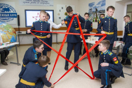 В завершении мероприятия преподаватели предложили кадетам, получившим отличительные знаки, с помощью ленты построить звезду.