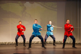 Затем торжественный вечер продолжила концертная программа. Свои танцевальные, хореографические, акробатические номера представили воспитанники Ставропольского президентского кадетского училища и Аксайского Данилы Ефремова казачьего кадетского корпуса.