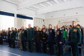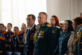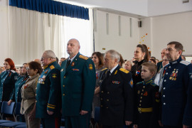 В Ставропольском президентском кадетском училище для всех кадет и педагогов Ставропольского ПКУ и Аксайского кадетского корпуса состоялось торжественное мероприятие, посвящённое Дню защитника Отечества. Традиционно торжественное мероприятие началось с внесения Государственного Флага Российской Федерации, Знамён Ставропольского президентского кадетского училища и Аксайского Данилы Ефремова казачьего кадетского корпуса. Прозвучал гимн Российской Федерации.