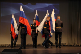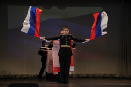 Завершили концертную программу кадеты 6 «Д» класса, представив хореографический номер с российским триколором «Вперед, Россия!»