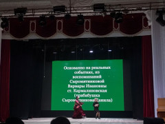 Концертные номера гражданско-патриотической направленности, исполненные ведущими коллективами краевого центра (Государственный казачий ансамбль песни и танца «Ставрополье», Ставропольский государственный педагогический институт, образцовые детские коллективы Дворца культуры им Ю.А. Гагарина: «Степные зарницы», «Казбек», «Эдельвейс»), в едином сценарном плане студентов Ставропольского краевого колледжа искусств, обучающихся по направлению «Театральное творчество», погрузили зрителей в 1943 год. Креативная подача исторических событий и подвигов наших соотечественников, проживающих эти трагические события на Ставрополье, не оставили равнодушными кадет.