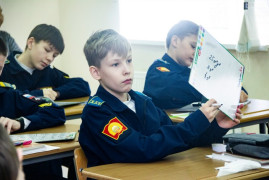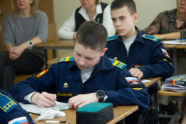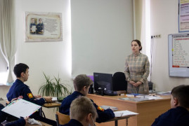 В начале урока кадеты вспомнили основные формулы и понятия данного раздела, выполнив математический диктант, далее обучающиеся были разбиты на малые группы, для выполнения заданий: складывали пазл, классифицируя алгебраические выражения по способу разложения на множители, занимались дешифрованием сообщения, при помощи рационального счёта, а также решали уравнения высоких степеней, предварительно разложив их на линейные множители.