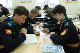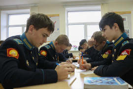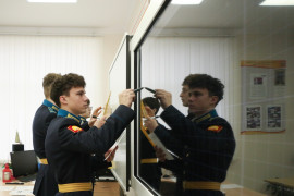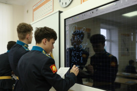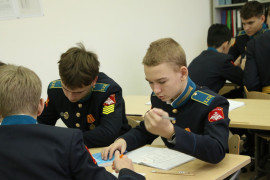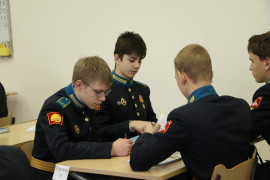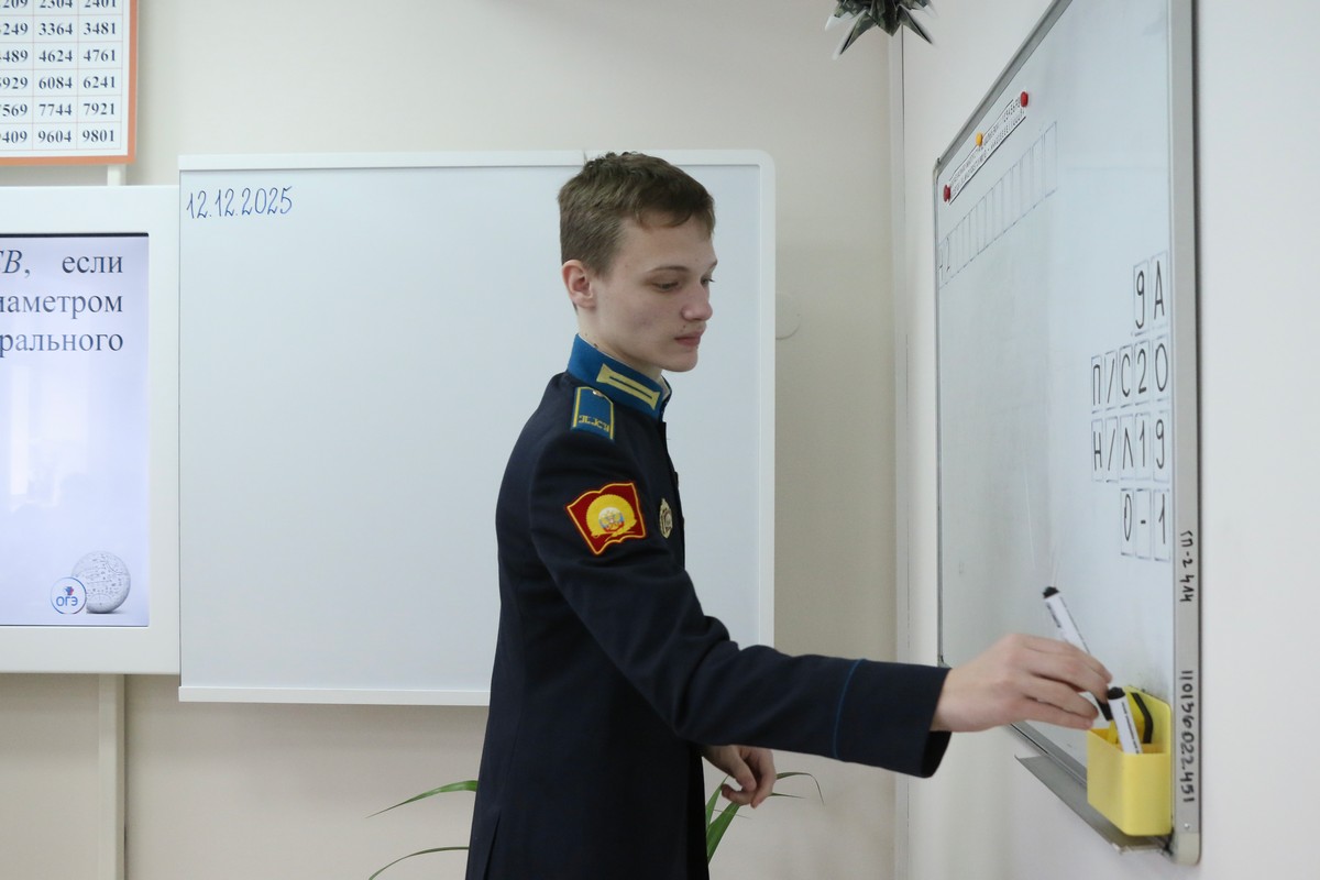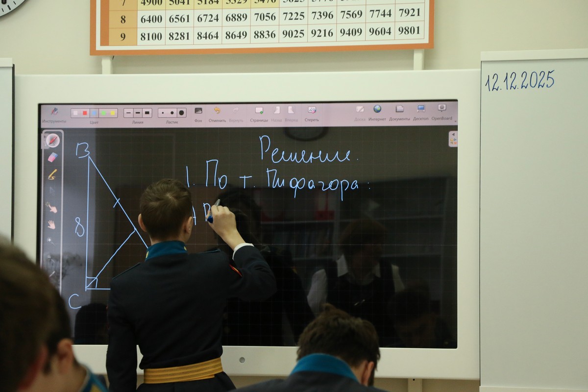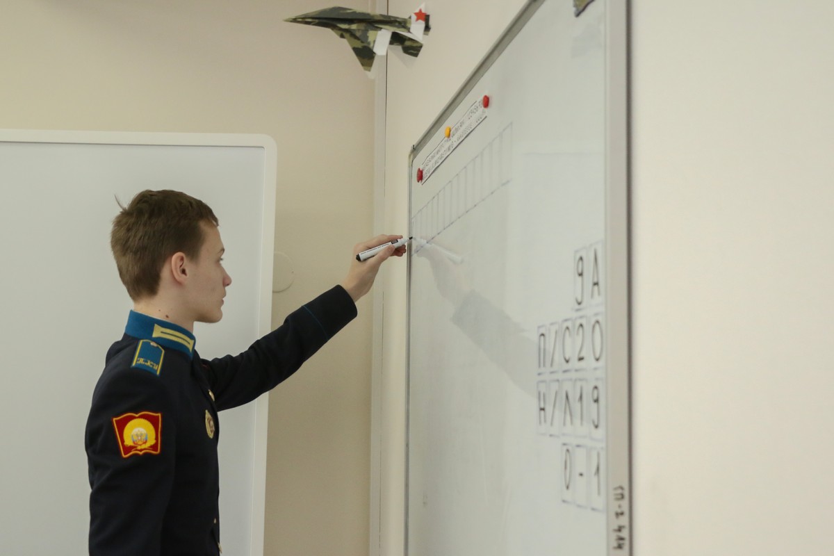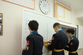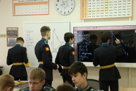 Офицер должен владеть арсеналом стратегий! Поэтому, развитие многовариантного геометрического мышления и умения выбирать оптимальный алгоритм решения задачи – такую цель преследовала, готовя открытый урок, преподаватель ОД (математика, информатика и ИКТ) Наталья Александровна Иванова. В 9 «А» классе прошел необычный урок геометрии. Урок одной задачи. Четыре способа решить одну и ту же геометрическую задачу продемонстрировали кадеты на уроке. От воспитанников потребовалось проявить большой арсенал знаний. Каждое решение необходимо было обосновать и защитить.