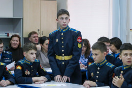 В Ставропольском президентском кадетском училище продолжается череда открытых внеурочных мероприятий в рамках Фестиваля-конкурса педагогического мастерства «Практика. Сотрудничество. Результат». Одним из таких мероприятий стало конкурсное задание проекта «Разговоры о важном» на тему «Связь». Провели его у кадет 8 «А» класса воспитатели Андрей Сергеевич Кулибабин и Галина Германовна Пензева.