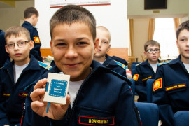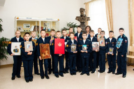 Сборник стихотворений Александра Сергеевича Пушкина с трёхсторонним золотым обрезом, треугольная книга, книги-раскладушки, миниатюрные книги и многие другие – всё это смогли посмотреть, почитать, полистать самые юные кадеты СПКУ. «Самые умные книги» – это энциклопедии, справочники, словари. «Кадетские» – это издания СПКУ, включая газету «Кадетский Форпост».