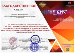 Кадеты Ставропольского президентского кадетского училища – призёры международного фестиваля-конкурса искусств «НА БИС». Учредителем и основным организатором фестиваля-конкурса являются фестивальное агентство «Белый кот» (г. Москва), совместно с Международным арт-центром «Наследие» (г. Санкт-Петербург).