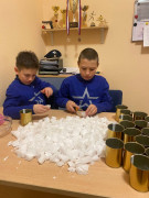 Для изготовления блиндажных свечей воспитанникам потребовались: консервная банка, гофрокартон для фитиля и парафин марки П-2 (пищевой).