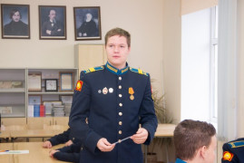 Воспитанники с большим удовольствием высказывались о профессии офицера, как о своей будущей деятельности, выявляя свои личностные качества и проводили аналогию с качествами личности защитника Отечества, военнослужащего и настоящего офицера. Приятной неожиданностью для кадет оказалось чрезвычайно близкое соответствие с набором качеств и черт характера личности офицера и своих собственных. Также поговорили о выдающихся людях, на которых следовало бы, по мнению ребят, держать равнение и брать пример. Интересно было то, что примерами для подражания для кадет являлись как известные и гениальные русские полководцы, так и их собственные отцы – военнослужащие Министерства обороны РФ, офицеры.