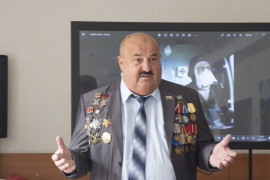 Кадеты встретились с представителем «Союза Чернобыль» Ставропольского края, участником ликвидации катастрофы на ЧАЭС, командиром вертолёта Михаилом Ивановичем Хлыновым.