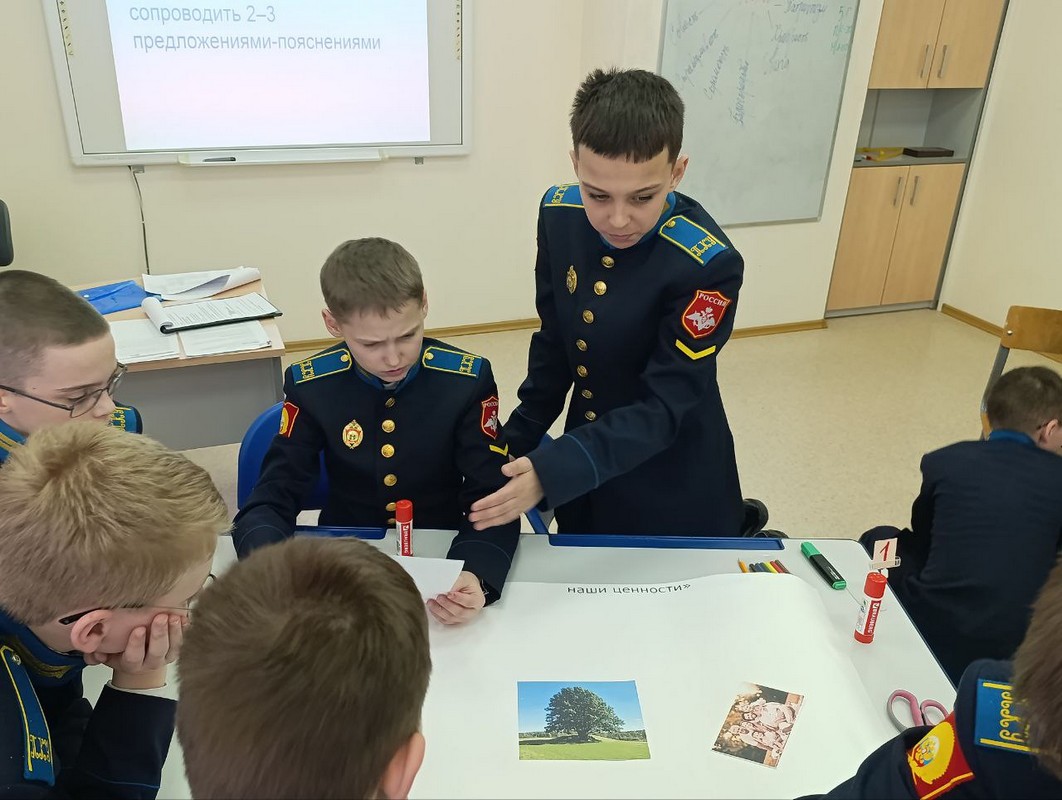 В группах кадеты создавали коллажи из картинок и цитат, отражающих понятия «Честь» и «Достоинство». Презентуя свои работы, они с энтузиазмом доказывали: честь – это не просто слово и не отдельный поступок, это целый образ жизни, требующий ежедневного выбора.