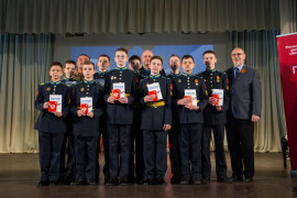 «Я, получая паспорт Гражданина Российской Федерации, с открытым сердцем и чистыми помыслами, торжественно обещаю: хранить верность Российской Федерации и быть достойным гражданином моей великой страны. Обещаю верно и преданно служить Отечеству, защищать его интересы, безопасность и независимость. Обещаю сделать всё зависящее от меня для процветания России и её лучшего будущего», - такие слова торжественной обещания произнесли кадеты. После чего почетные гости и начальник училища вручили паспорта юным гражданам России.