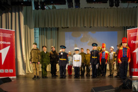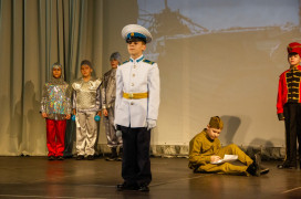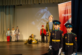Открылось торжественное мероприятие небольшим театральным представлением, которое подготовили юные актёры. О Защитниках нашего Отечества в разное историческое время поведали в своем выступлении кадеты 5 Е класса.