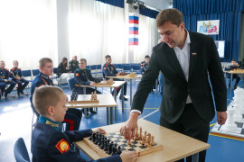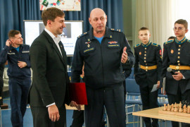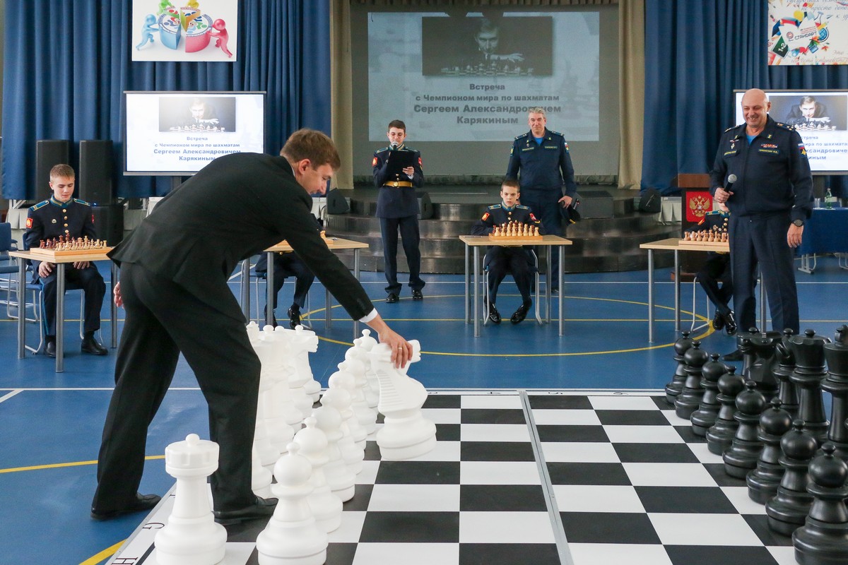 Чемпион мира по шахматам, гроссмейстер, член Совета Федерации от Республики Крым Сергей Александрович Карякин побывал в гостях у воспитанников Ставропольского президентского кадетского училища. Чемпиону провели экскурсию по училищу, он пообщался с воспитанниками и провел сеанс одновременной игры. Сергей Александрович Карякин в 12 лет стал самым молодым гроссмейстером в истории, был внесён в Книгу рекордов Гиннесса. Встреча с ним произвела на кадет самые яркие впечатления. Сыграть в шахматы с чемпионом мира – мечта любого, кто хоть немного увлекается этой интеллектуальной игрой.