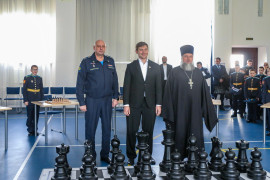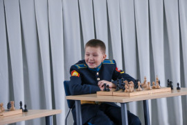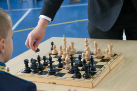 Во время визита Сергей Александрович пообщался с ребятами, с огромным удовольствием оставил свои автографы на шахматной доске, фотографиях, памятных вещах кадет, оставил добрые пожелания в Книге почётных гостей СПКУ. Но самым долгожданным событием был, конечно, сеанс одновременной игры. В училище очень много кадет, которые увлекаются шахматами, есть программа дополнительного образования «Шахматы» (руководитель – педагог ДО Пётр Николаевич Кучеров).