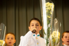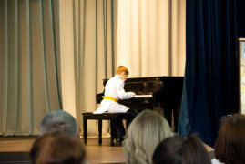 Концертная программа началась с выступления хора 1 учебного курса. Затем старинной французской песенкой заиграл рояль, после чего кадеты 5 «Е» прочли стихотворение.
