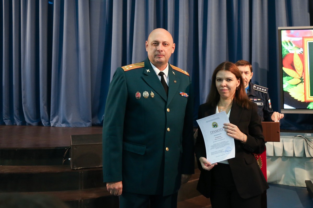 Парад наград продолжил заместитель начальника училища по учебной Сергей Владимирович Степанов. Он зачитал праздничный приказ начальника Ставропольского ПКУ о награждении почётными грамотами и благодарственными письмами сотрудников училища.
