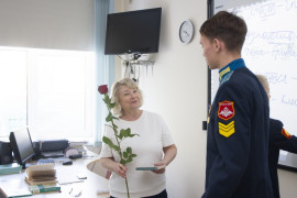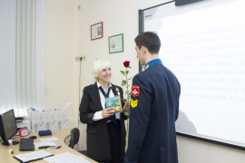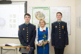 Воспитанники с букетами, добрыми словами благодарности и лучшими пожеланиями заходили на занятия к своим любимым преподавателям. В этот день никого не забыли поздравить. В училище сложилась добрая традиция – в этот праздник поздравлять не только тех, кто ведёт уроки, но и всех педагогических работников, которые передают свой опыт и знания кадетам – воспитателей, классных руководителей, методистов, педагогов-психологов и педагогов-организаторов, потому что каждого сотрудника можно в полной мере считать педагогом.