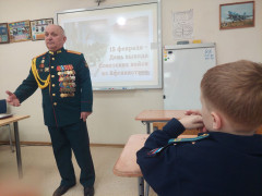 В преддверии Дня памяти воинов-интернационалистов у воспитанников 5 «А» класса Ставропольского президентского кадетского училища прошёл Урок мужества, посвящённый выводу советских войск из Афганистана. Этот день – особый для нашей страны, ведь он напоминает нам о мужестве и героизме тех, кто выполнял свой долг за пределами Родины, защищая интересы государства и помогая другим народам.