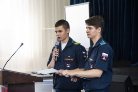 Следующими с отчётом о летней практике выступили ребята, побывавшие в Военной академии ракетных войск стратегического назначения им. Петра Великого (г. Балашиха). Кадеты также узнали всё об условиях поступления и учёбы в этом вузе. Знакомиться с академией РВСН десятиклассникам помогал выпускник СПКУ 2019 года Никита Усенко, который сейчас учится на 4 курсе академии. Также у кадет в этом вузе прошли учения под названием: «Основы боевой подготовки: тактика, инженерия, топография». Кадеты СПКУ сделали для себя ещё одно открытие: в военных вузах можно и нужно заниматься наукой, для этого есть все необходимые условия.