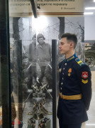 На выставке кадеты смогли увидеть личные вещи Матрёны Ноздрачевой, которая всю войну прошла медицинской сестрой и стала полным кавалером ордена Славы. Она в числе первых форсировала Днепр, оказав помощь более сотни раненым.