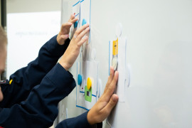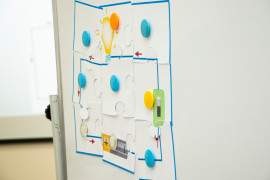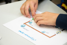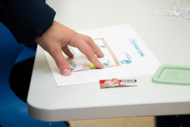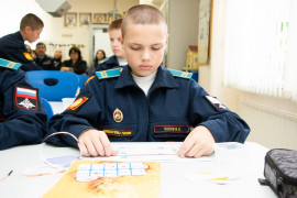 В начале занятия педагог рассказала воспитанникам о том, какими способами вырабатывается электричество, что такое электрическая цепь, что входит в её состав и какие бывают виды цепи. А затем все вместе приступили к практической части занятия. На бумаге с помощью самоклеящейся фольги, «таблетки» (так называют круглые плоские батарейки) и светодиода ребята смогли построить свою электрическую цепь. Получилось у всех. Лампочка каждого кадета зажглась синим, жёлтым, зелёным или красным светом.