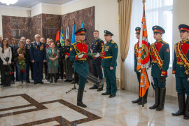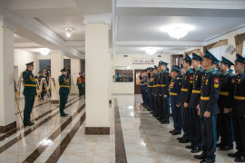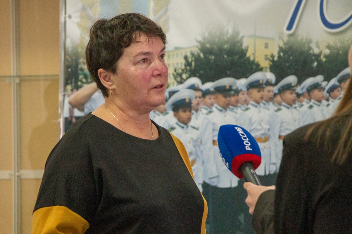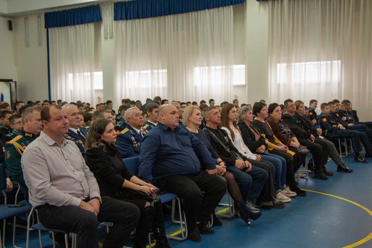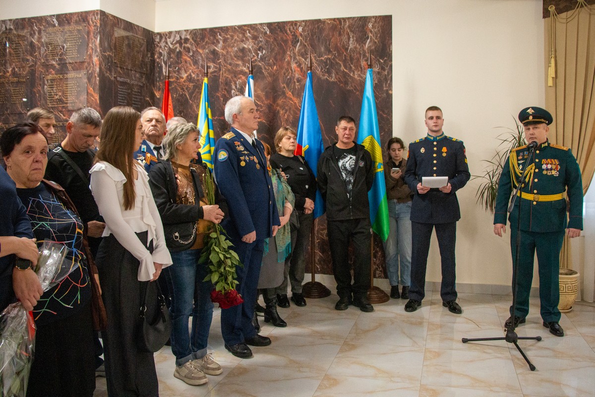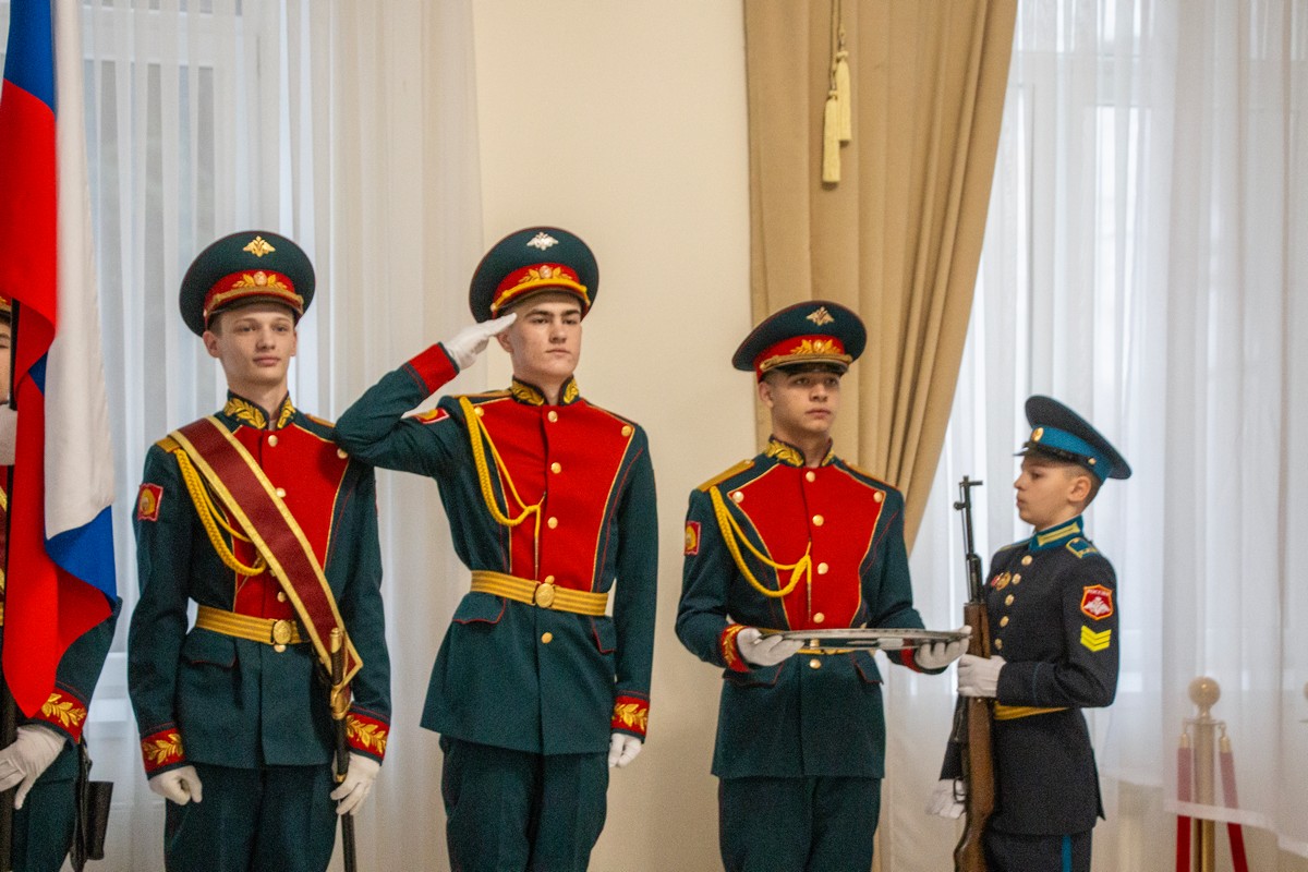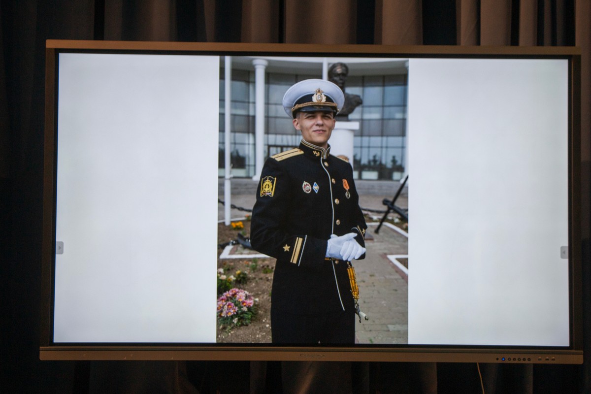 После минуты молчания, которой почтили память погибших героев, право открыть Стену Памяти было предоставлено кадету 6 учебного курса СПКУ Хасану Калицеву и матери погибшего в зоне проведения СВО выпускника училища.