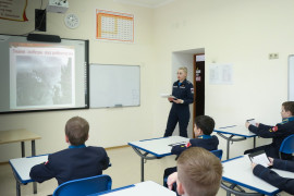 Во время «классного часа», который проходил в форме беседы, кадеты вместе с педагогом вспоминали историю Великой Отечественной войны и имена её Героев: Александра Матросова, Алексея Маресьева, Александра Ковалёва. Воспитанники рассказывали о судьбах этих людей так, будто это они сами говорят за себя.