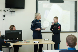 У воспитанников 5 «Е» класса Ставропольского президентского кадетского училища состоялось открытое внеурочное мероприятие на тему «Герои прошлого и настоящего времени». Провела «классный час» воспитатель-классный руководитель 5 «Е» Елена Петровна Решетникова.