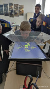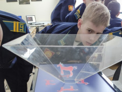 Пришлось воспитанникам нелегко, ведь сначала надо было создать своего животного, а потом его ещё и «оживить». «Оживление» происходило с помощью голографической призмы, свойства которой кадеты будут изучать на уроках физики только в старших классах. Но сегодня на уроке они уже применили возможности построения голографического изображения для своих рисунков. Так получился урок изучения не только информатики, но и физики!