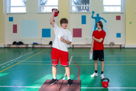 - упражнения на силу (подтягивание, или отжимания, или поднимание гири);