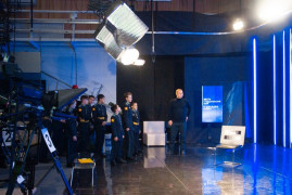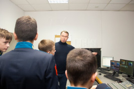 Воспитанники Ставропольского президентского кадетского училища, занимающиеся по программе дополнительного образования «Основы редакторского дела» (руководитель – педагог ДО Анна Сергеевна Максименко), побывали в гостях в редакции ГТРК «Ставрополье». Кадет радушно приняли в гостелерадиокомпании и провели интересную экскурсию исполнительный продюсер Жанна Александровна Зуева и заместитель директора, начальник службы информационных программ Александр Валентинович Бегунков.
