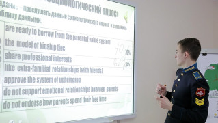 На занятии использовались информационно-коммуникационные, а также аудиовизуальные технологии. ИКТ были представлены презентацией, которая наглядно иллюстрировала содержание урока. Интеграция двух предметов гуманитарного цикла заключалась в том, что кадеты выполняли задания раздела «Обществознание» на английском языке, демонстрируя языковые и личностный компетенции.