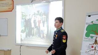 Наиболее эмоциональным этапом урока была «Рефлексия», которая представляла собой видеоряд фотографий из личных семейных архивов кадет.