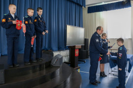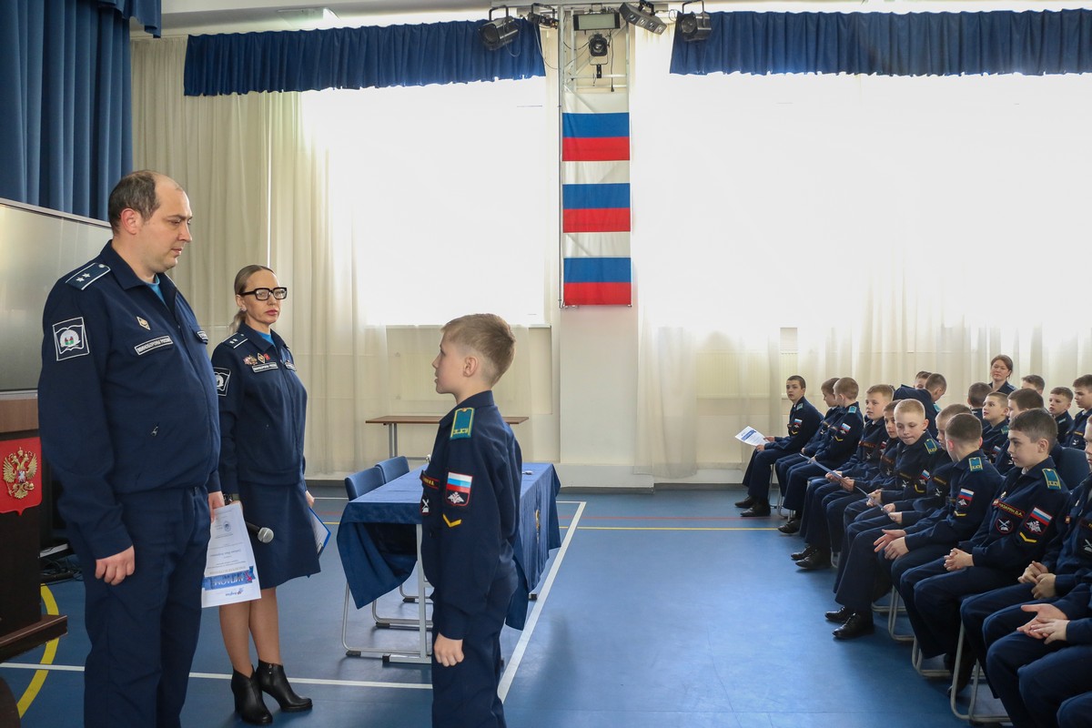 В завершение мероприятия Дмитрий Сергеевич Гутенёв призвал кадет поддерживать порядок и высокую дисциплину в учёбе и поведении. Оксана Сергеевна Романова пожелала всем сил, энергии и позитивного настроя на четвёртую четверть.