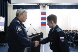 Старший воспитатель курса вручил сертификаты за участие в конкурсе иллюстраций и буктрейлеров «Моя любимая книга», посвящённого книгам-юбилярам 2023 года, среди обучающихся довузовских образовательных организаций Минобороны России. Затем вручил дипломы за участие кадет в межрегиональном молодёжном поэтическом фестивале-конкурсе имени поэта-фронтовика Вениамина Ащеулова «Журавли».