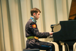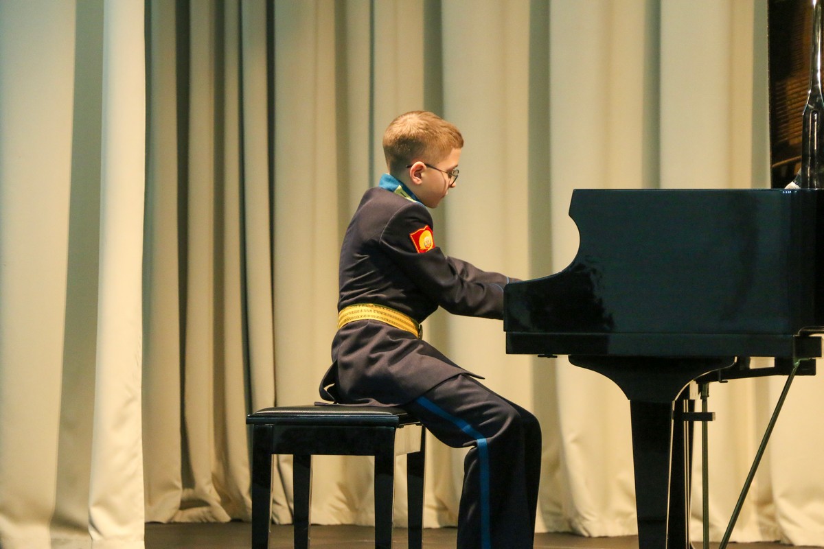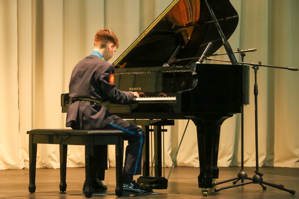 В Концертном зале Ставропольского президентского кадетского училища состоялся конкурс «Лучшие исполнители» среди воспитанников, посещающих программу дополнительного образования «Фортепиано». В состязании приняли участие кадеты, которые недавно стали обучаться игре на фортепиано и те, которые уже не первый год занимаются музыкой. Причём среди них были баянист и саксофонист, которые также исполнили конкурсные произведения.