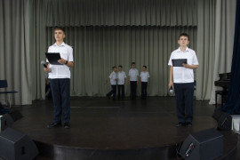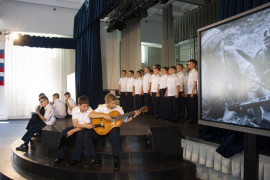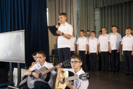 Продолжился отчёт о летней практике презентацией воспитанников 5-х классов. За время практики ребята ознакомились с огромным материалом о Битве за Кавказ и в качестве презентации представили литературно-музыкальную зарисовку «Седой Кавказ Героев помнит».