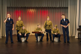 Семиклассники во время практики посетили места боёв и места памяти Битвы за Кавказ. Свою презентацию ребята провели в виде театрализованного выступления, представ на сцене концертного зала СПКУ в форме военных лет.