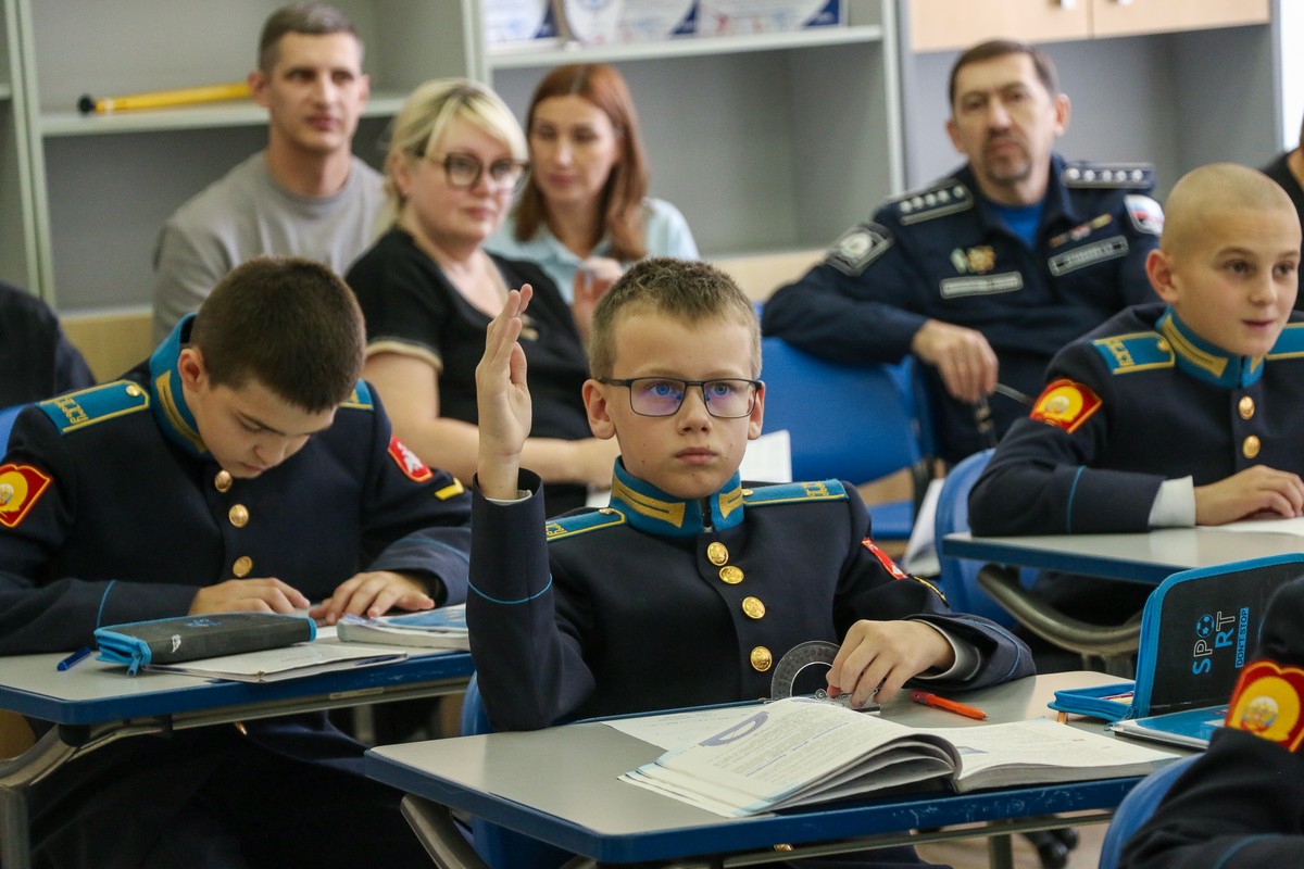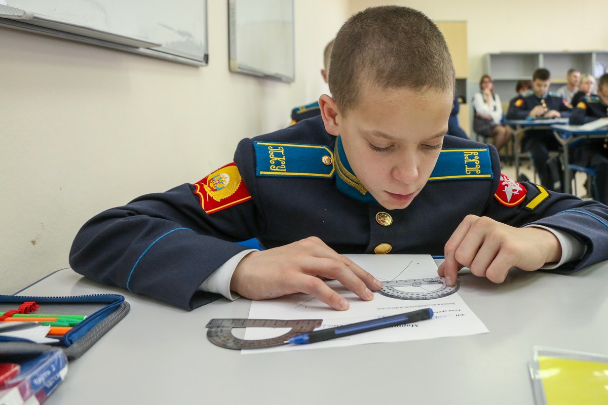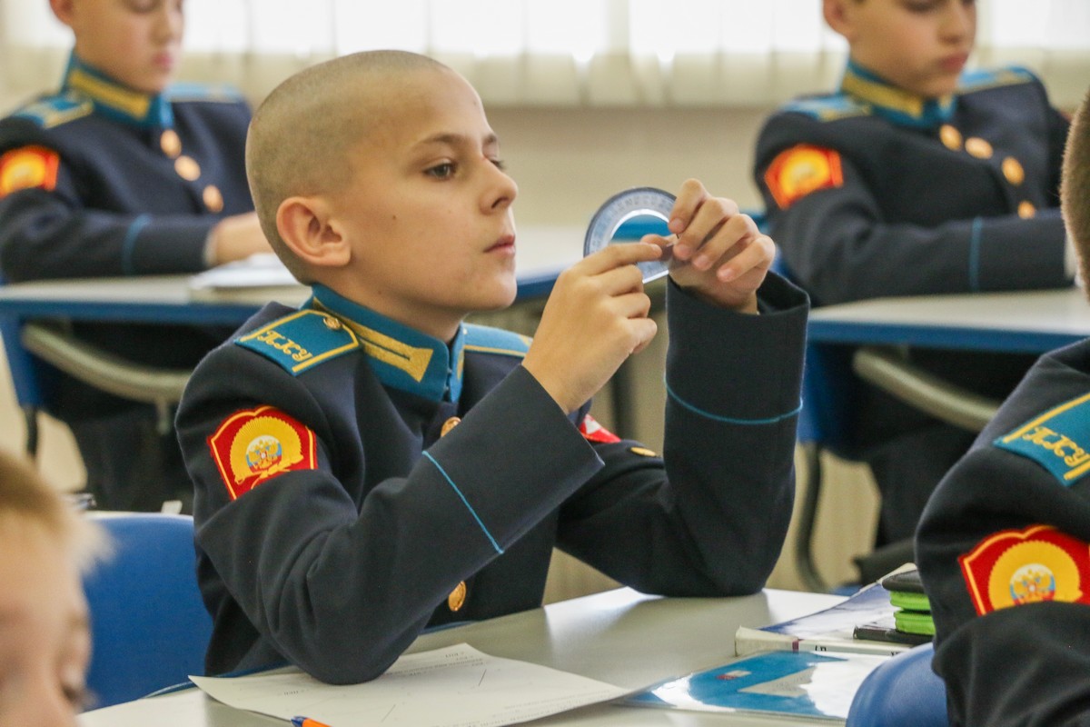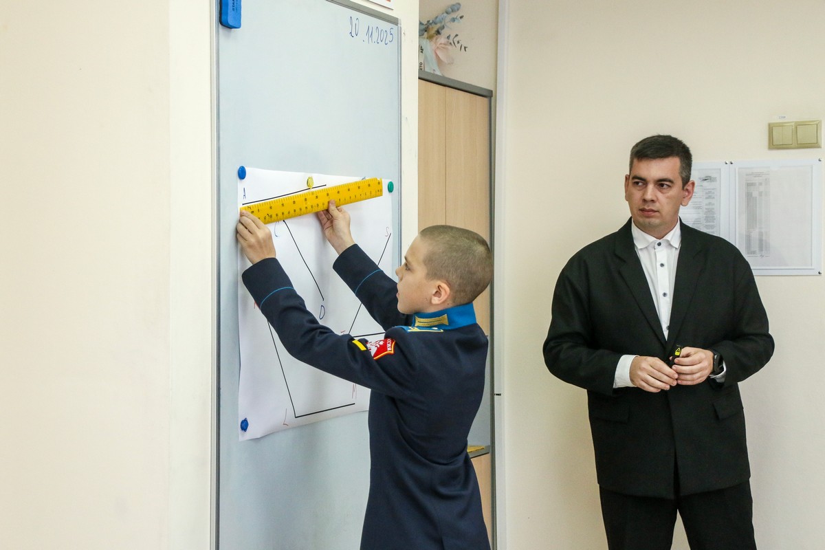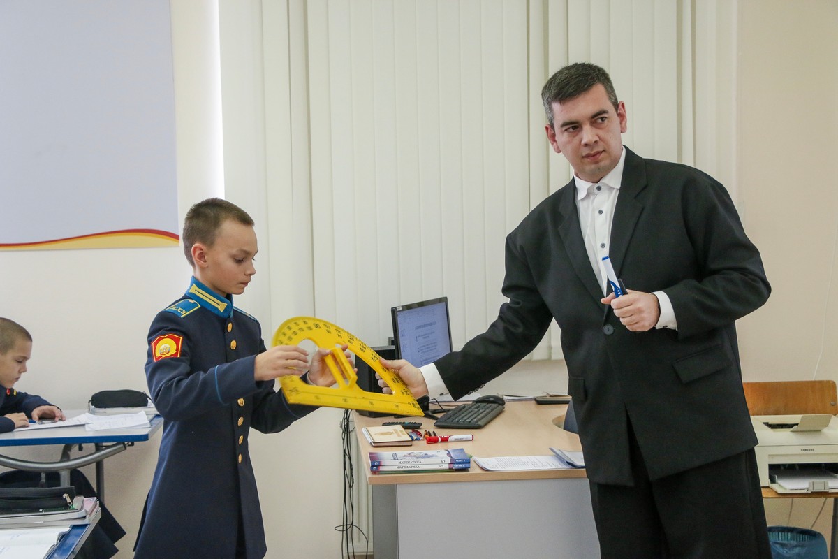 Пятиклассники узнали: как сравнивать углы, что измеряются они в градусах, познакомились и научились пользоваться новым измерительным прибором – транспортиром. Преподаватель Иванов, используя передовые педагогические технологии и методологические подходы, способствовал углубленному пониманию учащимися теоретических аспектов и практического применения изучаемой темы. Даже физразминка во время занятия была посвящена теме углов. Кадеты пытались руками изобразить тупой, прямой и острый углы, совершая повороты на 90 и 180 градусов.
