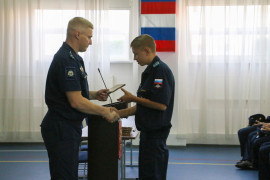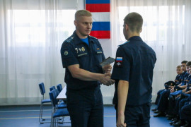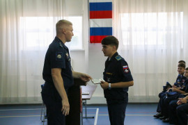 В завершение курсового собрания 4 учебного курса старший воспитатель Дмитрий Владимирович Корыпалов поздравил с днём рождения всех кадет, чьи дни рождения прошли летом, и вручил им памятные подарки.