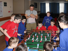 48 кадет 1-го курса Ставропольского президентского кадетского училища приняли участие в турнире по настольному футболу. Соревнования проходили по олимпийской системе – команда, которая потерпела поражение в матче на любой стадии, завершала своё участие в турнире. Каждый класс заявил 4 команды (по два кадета в каждой команде). Всего было запланировано 23 матча, по итогам которых 1-й курс узнает своего чемпиона в этой игровой дисциплине.
