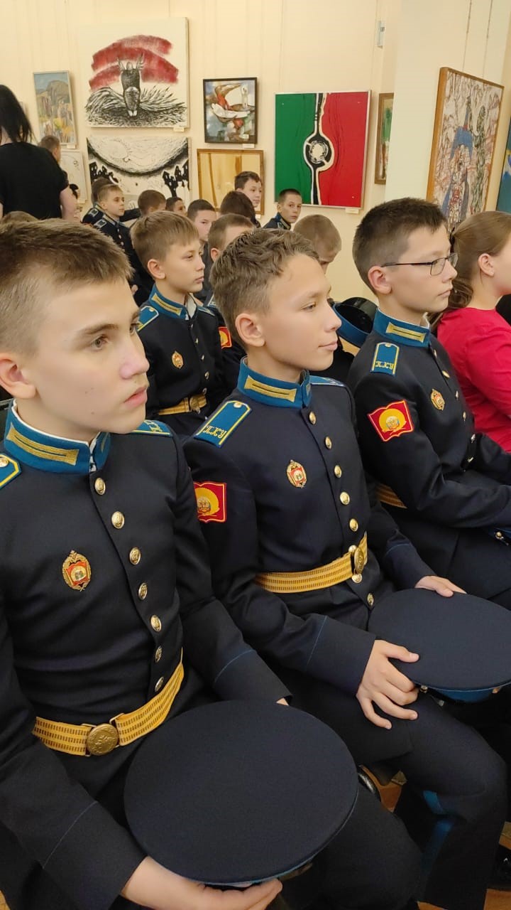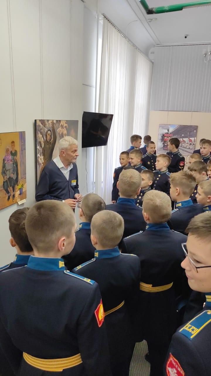 Во второй части праздника кадеты посетили экскурсию по персональной выставке художника И.Б. Хоронько. Экспозиция позволила нашим воспитанникам ближе познакомиться с произведениями современного искусства, увидеть, как через живопись передаётся история, эмоциональная энергия и личное отношение автора к важным темам.