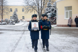 Почётный караул торжественно вынес портрет Литвинова Александра, чтобы каждый кадет и педагог мог с ним проститься. Минутой молчания почтили память погибшего.