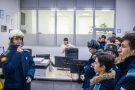 В рамках занятия кадетам показали возможности специализированного автомобиля аварийно-диспетчерской службы и рассказали о её работе.