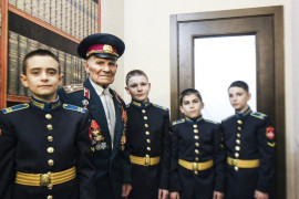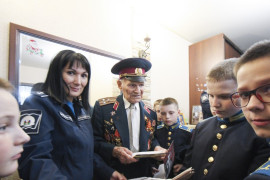 Воспитанники 5 «Д» класса Ставропольского президентского кадетского училища вместе со своим классным руководителем Аидой Александровной Перехода и Алексеем Михайловичем Спириным побывали в гостях у ветерана Великой Отечественной войны Дмитрия Назаровича Скоробогач. 6 ноября Дмитрию Назаровичу исполнилось 97 лет, пятиклассники поздравили его с днём рождения.