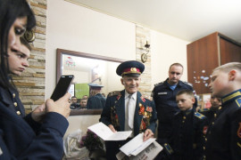 Ветеран был очень рад приходу юных гостей и поздравлениям от кадет. Он с удовольствием рассказывал о своей судьбе, делился своими воспоминаниями, показывал ребятам свой фотоальбом, рассказывал о самых трудных и самых счастливых минутах своей жизни, подчеркнув, что никогда не жалел о том, что выбрал путь защитника Родины.
