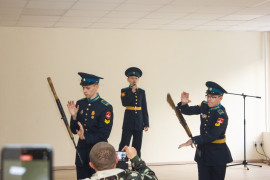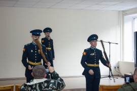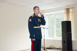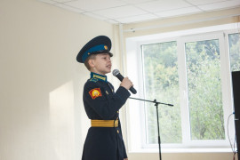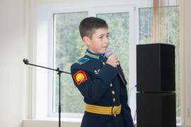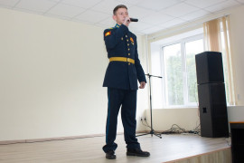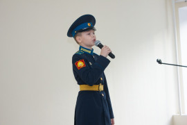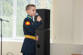 Стихотворение Роберта Рождественского «Война» прочитал кадет 6-х классов Захар Заболотский. Его однокурсник Данияр Янгалычин спел «Балладу о солдате».